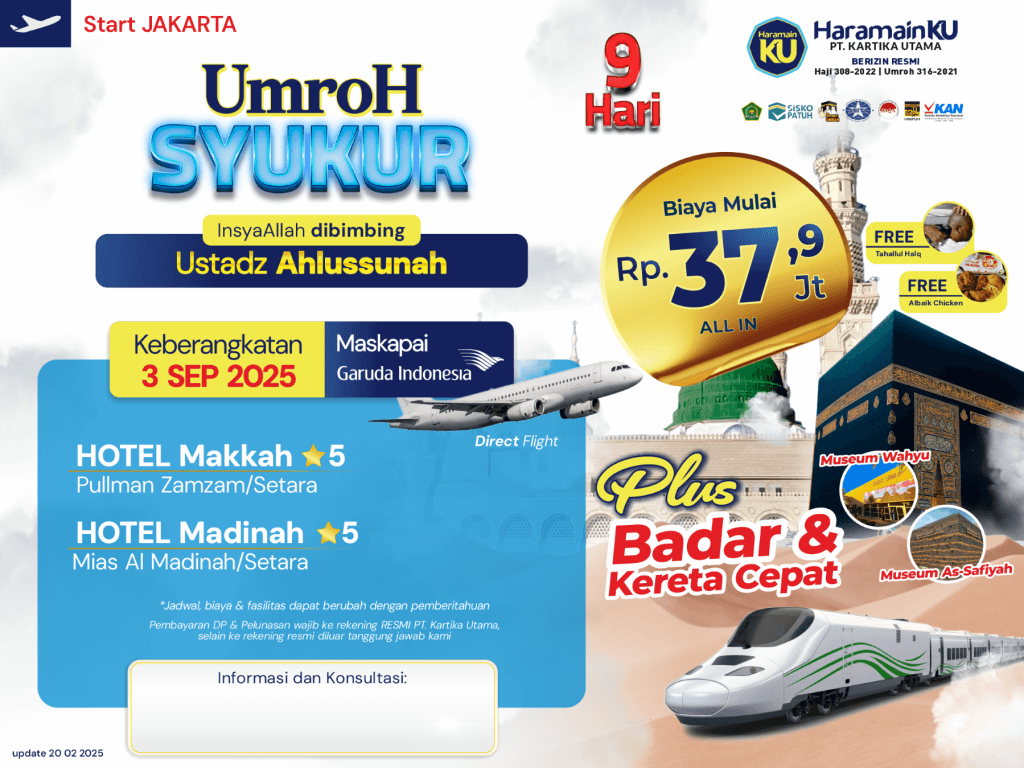 KETENTUAN : Jadwal, Biaya, dan Fasilitas dapan berubah sewaktu-waktu mengikuti kebijakan pemerintah KSA dan Indonesia