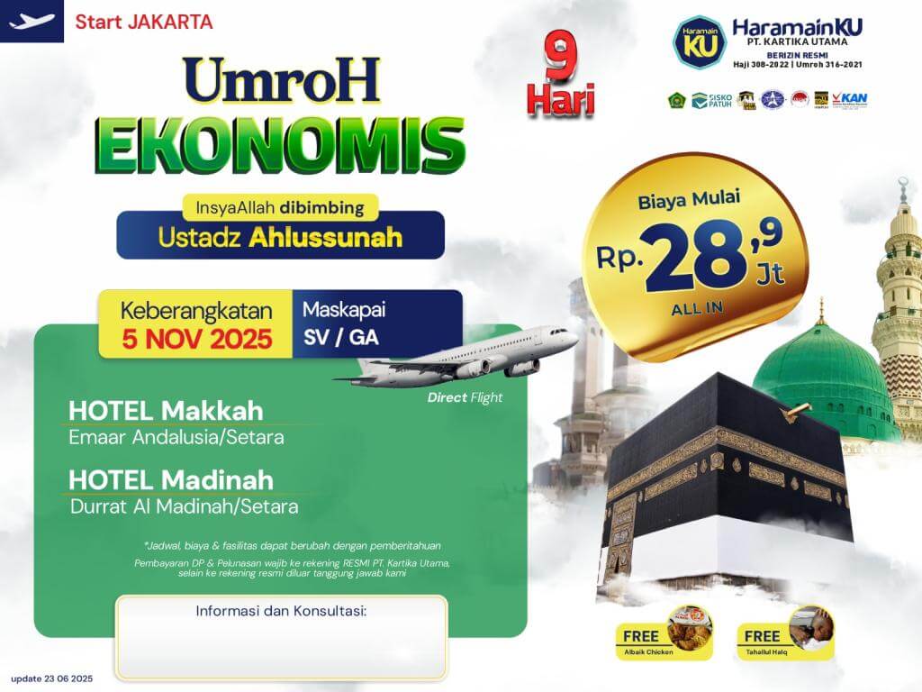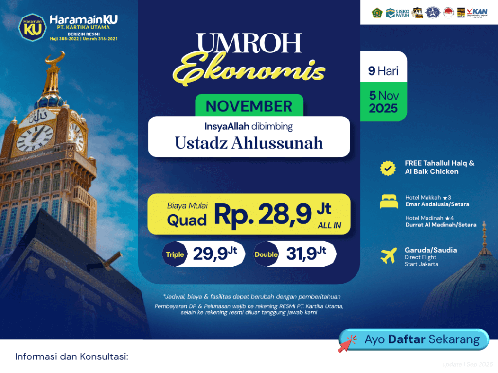 KETENTUAN : Jadwal, Biaya, dan Fasilitas dapan berubah sewaktu-waktu mengikuti kebijakan pemerintah KSA dan Indonesia